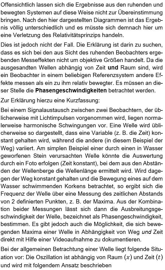 Die Phasengeschwindigkeit des Lichts zurück Hinweis: Diese Darstellung ist eine Kurzfassung. Eine ausführliche Herleitung ist in Kap. 8 wiedergegeben. Kap. 8